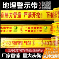 二种:夹金属可探测警示带(又称示踪带),可探测警示带是以PE聚乙烯薄膜和金属铝箔为基材,将警示带与示踪线合二为一的踪迹警示带。 根据用途可以分为:燃气警示带、电力警示带、电缆警示带、管道警示带、围栏警示带、石油管道警示带,乙醇管道警示带、动力电缆警示带、高压电缆警示带、给水管警示带、排水管警示带、给排水管警示带、弱电管道警示带、污水管道警示带、雨水管道警示带、输水管警示带、PCCP输水管道警示带、RPMP输水管道警示带、通讯光缆警示带、施工警示带、供水管道警示带、热力管道警示带、电力电缆警示带、可探测警示带、示踪带、安全警示带、输油管道警示带